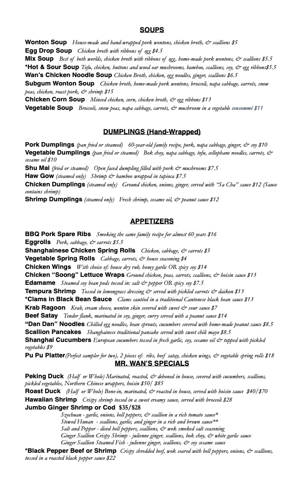 The ambiance is warm and inviting, with attentive service that makes you feel like family. At Wan's, every dish is crafted with fresh ingredients and a deep respect for culinary traditions, making it a must-visit for anyone seeking delicious, authentic Chinese cuisine.
